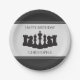 Super cool chess themed party plate featuring classic white pieces with the King, bishops, knights and rooks.  This paper plate can be personalised with your name!