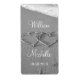 Personalised chic beach wedding wine bottle labels. Elegant black and white photo design with drawing of entwined hearts in the sand. Stylish script typography for names of bride and groom. Use as classy table decoration or thank you favour for guests at the party. Includes name or monogram plus date of marriage. Romantic coastal image / seaside theme with love symbol.