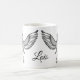 Personalise this mug featuring a black capped chickadee drawn in stylised pointillism reminiscent of traditional scrimshaw work. Simple and elegant, original artwork by Alaska Native artist S. Coxwell