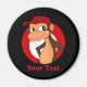 Personalised ḿagnet with an illustration of a cute happy monkey with red baseball cap, with custom text template for your name or message, illustration by MaxiHarmony/Radka Kavalcova