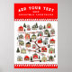Festive Christmas Countdown design featuring a snowy village of 24 holiday houses leading to a gingerbread house. Edit text to personalise.