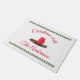 Personalised Christmas Candles design features the elegant image of a wreath of red Christmas candles as main design. Above image, displayed as an arch, are the words, "Christmas with". Below image reads "The (Family name)" Top and bottom of design is bordered with cute, green Christmas trees. Text appears in red decorative lettering.