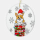Hand drawn cartoon Corgi dog breed with Santa Hat on coming up the chimney Christmas stickers with personalised Christmas ornament.