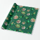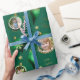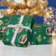 Personalised Christmas Green Gold Photo Ornament Wrapping Paper