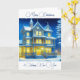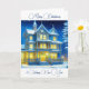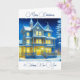 Seasonal winter house illuminated on a snowy night personalised Christmas card.
