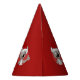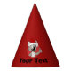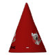 Customisable Party Hat with illustration of cute little koala bear with Santa's hat in red circle, Christmas holidays design for children, with customisable text template for your name or message; illustrated by Radka Kavalcova