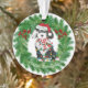 Cute Personalised Cartoon Sheepadoodle Puppy wearing Personalised Santa hat, wrapped in christmas lights. Festive christmas wreath border. Adorable sheepadoodle holiday Acrylic ornament!