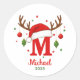 Personalised Christmas Monogram M Santa Hat Classic Round Sticker