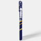 This monogrammed Christmas phone case features a navy blue and white snowflakes pattern decorated with golden yellow waves. The template makes it easy to type your name to create a unique accessory for a winter holidays season.
