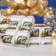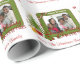 This festive and fun whimsical Christmas photo wrapping paper has a candy cane, bunches of red and green holly and berries, a bird holding an ornament for one of the three Christmas trees. There is a golden yellow glittery star atop one of the trees, with a gold present below it. There is also another red gift with ribbons on it, along with a felt look "Jolly Holly Christmas" text on the front. It has a striped green and red frame for you to add your own digital family photo to. If you need any matching items, or if you need assistance or changes, please email niteowlstudio@gmail.com.