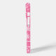 This monogrammed Christmas phone case features a pink and white snowflakes pattern. The template makes it easy to type your name to create a unique accessory for a winter holiday season.