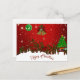 Customisable Christmas Holiday Post card featuring Christmas tree, Bells and Reindeer in attractive Red Theme.