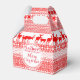 Customisable Merry Christmas gable favour box. Your name and message on beautiful Lapland style pattern in red and white background. Available in other styles. Matching personalised Christmas Paper napkin, paper plates and more...