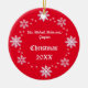 Change the background colour of this ornament to any colour you prefer. Simple but classy collectable tree trim has a border of snowflakes. The font style, and size can also be changed. Other ideas - you could put a couples names and add the number of the Christmas, for example, Lisa and Michael, First Christmas. The back of this ornament has been left blank so it can be further personalised if desired.