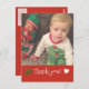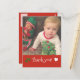 Customise this holly, white heart, Christmas red postcard with your own Christmas photograph and your message on the back.