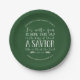 Personalised Christmas Bible Verse Typography on Green Party Paper Plates featuring Luke 2:11 in festive typography on a rustic green background, with quaint flourishes of white pine branches and pine cones. Perfect for a family gathering, church event, or just to have on hand to remember the Reason for the Season! Created by Zazzle pro designer BK Thompson © exclusively for Kate’s Creations; please contact us if you need assistance, have questions, or would like to enquire about custom work.