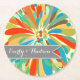 Personalised Chrysanthemum Bold Colourful Floral Round Paper Coaster