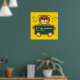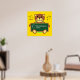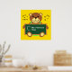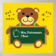 Customise this personalised classroom poster of a teddy bear holding chalkboard with teacher's name and an apple. Background colour can be changed too.