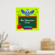 Customise this personalised classroom poster of a happy bluebird cartoon perched chalkboard with teacher's name and apple and books in foreground. Will brighten up any elementary school class. Background colour can be changed too.