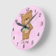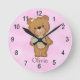 Adorable Personalised child's nursery / child's bedroom wall clock with a baby pink molted background, loveable baby Girl Teddy Bear holding a baby rattle. Customise the the background colour, name, or add your own text. This wall clock makes a great addition to your special child's nursery! All our products can be custom designed to meet your needs at no extra charge. Simply contact us through our store. Coordinating products available: Just ask us!