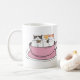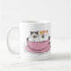 Cute cats in a teal coffee mug. Cat face outline with custom text! Great for coffee people.