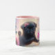 Personalised Coffee Mug – Custom Name or Message | Unique Gift Idea - Pretty pink floral coffee mug with an adorable black pug puppy and uplifting message.