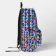 This allover print backpack features a vibrant geometric pattern that is perfect for school children, ensuring their essentials can be carried with style and comfort. Designed for practicality, this backpack features adjustable padded shoulder straps, a spacious interior, a mesh side pocket, and an internal identification label. It offers ample storage space for books, snacks, and other essentials without compromising on its lightweight structure. Use the text template provided to include your child’s initial on the backpack.