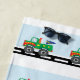 Colourful all over monster truck on the road beach towel that you personalise with your name.