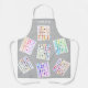 This colourful apron is decorated with a watercolor pattern on a grey background.