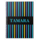 Personalised Colourful Stripes Pattern notebook. Customise it with your name for a chic girly unique look.