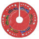 This playful tree skirt is encircled with colourful toy trains on a track. Add your name to the pretty red background.
