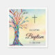 These colourful Baptism Napkins are decorated with a rainbow coloured family tree and a cross on a watercolor background.