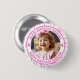 A cute personalised photo, name and age birthday button for a little girl, Background has pink and purple confetti. Add all your info and photo in the personalise area. Cute for friends and family to wear at a birthday party for kids!