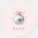 Personalised Coquette Disco Ball Pink Ribbon Classic Round Sticker