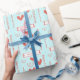 Personalised with your family name cute Aqua and Coral Christmas Holiday Wrapping Paper