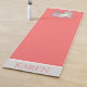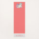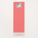 A trendy shade of coral is the background for this personalised yoga mat designed with a graphic of a whimsical unicorn with rainbow colours at the top of the mat. At the other end of the yoga mat your name is set in matching coral font on soothing light grey bordered in white to add a touch of accent, just for fun.
