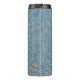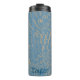This thermal tumbler has a beautiful coral reef/ shell pattern in blue and peach. It reminds you of the ocean. It has motifs of shells, corals, seagrass and other doodles. Original Artwork by Hes-Mari / Hes-Mari Design.