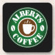 Personalised cork back coffee and drink coaster set. Custom beverage coasters with coffee bean and cup logo. Trendy design for home, office, bar, cafe, coffee shop, bistro, restaurant etc. Fun Birthday gift idea for friends and family.