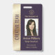 Easily personalise this professional luxury style gold and purple employee photo ID badge with your custom details.