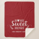 A cosy sherpa blanket featuring the words Home Sweet Home and your name. Personalise this red and white throw blanket for a beautiful gift. Other colours available. Designed for you by Blackberry boulevard.
