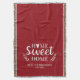 A cosy blanket featuring the words Home Sweet Home and your name and wedding date. Personalise this red and white throw blanket for a beautiful wedding gift. Other colours available. Designed for you by Blackberry boulevard.