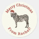 Personalised Cream Merry Christmas Santa Zebra Classic Round Sticker