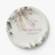 Personalised Cream White Hydrangea Bridal Shower paper plate.    Elegant.   Tying the Knot.  Bow.  Brown text.