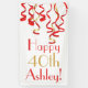 Personalised red and gold curly ribbons birthday banner. Just switch out the name for your name. Perfect for a woman's birthday banner. You can also change the year. In this case it's set for a 40th birthday.
