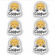 This set includes 6 name labels with a custom name and a cute curly yellow dog illustration.