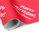 Personalised custom colour Birthday wrapping paper. Add your own name and message like Happy Birthday. Cute personalizable idea for party celebrations. Suitable for men women and kids (boys and girls). Customisable background colours and note. Cherry red and white example. Trendy typography template. Fun gift wrap with name of child or adult. Customise for dad, father, mother, mum, daughter, son, grandchild, friends, family etc.
