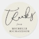 Elegant, round, personalised thank you stickers/labels featuring a handwritten script - can be used for any occasion. Perfect for dressing envelopes or favours/gifts. The background colour can be changed and the large ‘thanks’ typographic image can be re-sized and moved if you wish. The rest of the text is completely editable, so the font style, size, colour and placement can be changed to suit your needs. A version with white typographic overlay/text and other sticker shapes are available in my store.