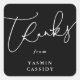 Elegant, round, personalised thank you stickers/labels featuring a handwritten script - can be used for any occasion. Perfect for dressing envelopes or favours/gifts. The background colour can be changed and the large ‘thanks’ typographic image can be re-sized and moved if you wish. The rest of the text is completely editable, so the font style, size, colour and placement can be changed to suit your needs. A version with white typographic overlay/text and other sticker shapes are available in my store.