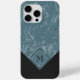 Contemporary grey and black marble stripes texture stripes pattern on teal blue green. With room to customise with a monogram or initial of your choice. Beautiful, modern, and cool cover for the trend-savvy and art-loving hip trendsetter, artsy motif lover who wants to protect their phone from dust and dirt, wear and tear. This design is available for Apple iPhone 6, 7, and 8 Plus, 10 or X, XR, XS, 11, 12, 13 Mini, 14, 15 Plus, and Pro Max cellphone cases. Show off your style, look fashionable trendy, and feel stylish with a unique design on a mobile device accessory of your choice.