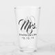 Personalised Custom Mrs Mr Couple Wedding Drinking Glass, a beautiful keepsake bridal shower gift or his and hers customisable wedding gift for the new home.